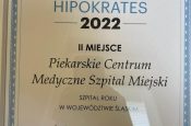 Piekarskie Centrum Medyczne dzięki głosom pacjentów i czytelników Dziennika Zachodniego zostało sklasyfikowane na drugim miejscu w plebiscycie Hipokrates 2022 w kategorii Szpital Roku. Plebiscyt odbywał się pod patronatem Narodowego Funduszu Zdrowia. To kolejne wyróżnienie dla naszego szpitala w ostatnim czasie.