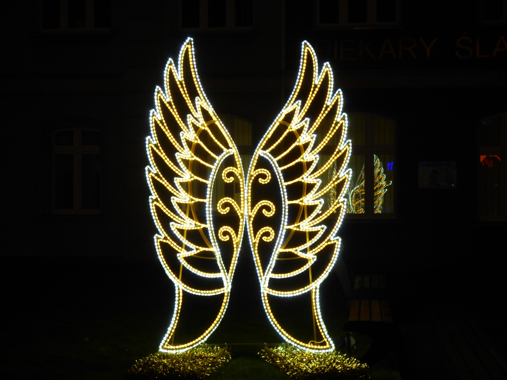 Na ulicach Piekar Śląskich pojawiły się już ozdoby świąteczne. Czy hitem tego roku będą anielskie skrzydła? Na facebooku już pojawiły się zdjęcia mieszkańców ze skrzydłami. A na profilu Foto Piekary Śląskie (skąd podkradam zdjęcia) zobaczycie więcej ujęć świątecznych aranżacji.