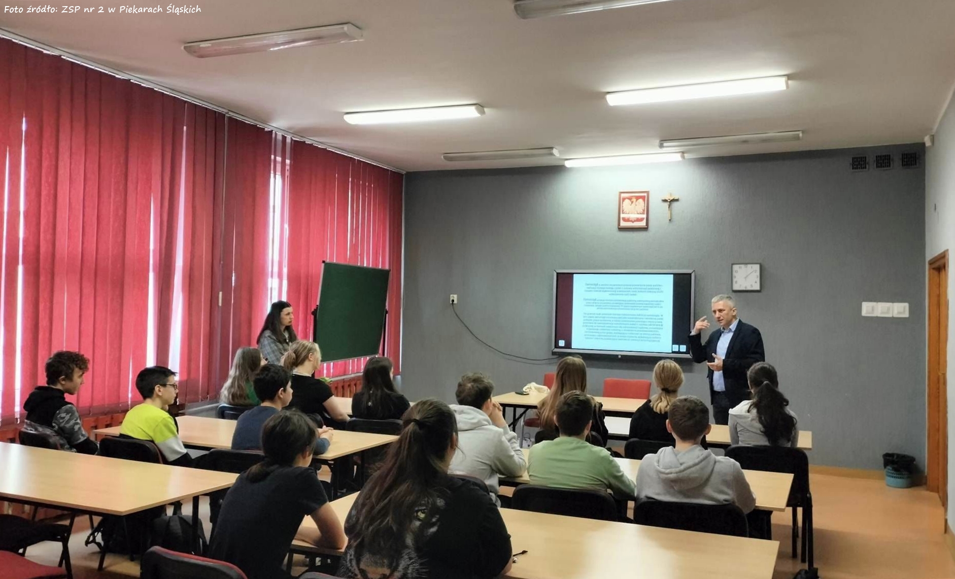 Radny Łukasz Ściebiorowski, szef Obywatelskiego Klubu Radnych spotkał się z uczniami klas ósmych Zespołu Szkolno-Przedszkolnego nr 2 i poprowadził zajęcia w ramach wiedzy o społeczeństwie. Tematyka oczywiście samorządowa!