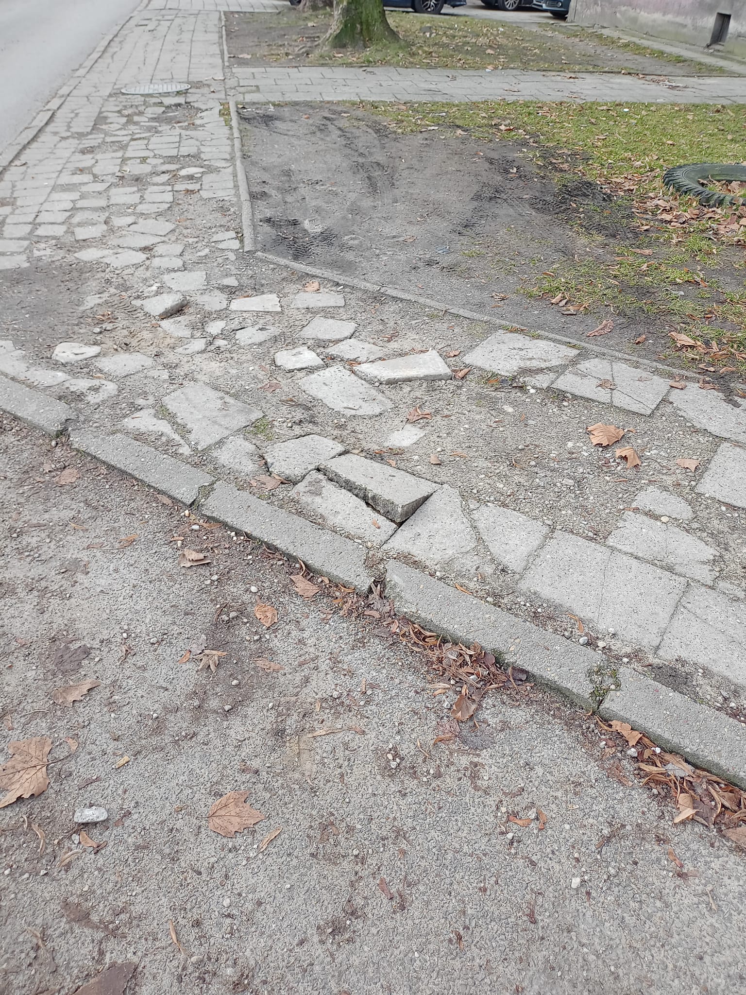 Polecam chodnik na ul. Maczka 4 i 6, tam to jest fajny ten chodnik, a raczej jego brak albo resztki. Ponad to chodnik pomiędzy Andersa 8 a Waculika 5, też ładny kwiatuszek.