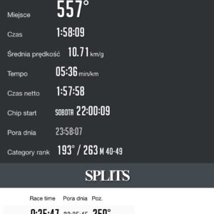 Nie brakowało silnej ekipy Lecymy Durś – bieganie z Wami to czysta przyjemność. Fajnie było się spotkać na trasie i poza nią. Dziękuję za wsparcie. Tomku – dzięki. Biegnąc za Tobą zrobiłem najszybszy kilometr biegu – szkoda, że nie byłem wstanie dotrzymać Ci tego tempa 🙂 Pawle – dziękuję, że mnie nie wyprzedziłeś… 😉