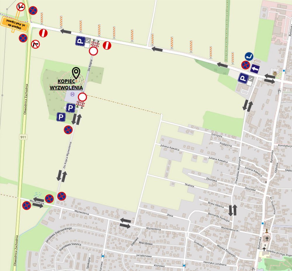 Ulica Do Kopca Wyzwolenia będzie dwukierunkowa z możliwością dojazdów do parkingów pod Kopcem Wyzwolenia. Nie będzie możliwy przejazd w stronę ul. Jana Pawła II. Na całym odcinku ul. Do Kopca Wyzwolenia będzie obowiązywał zakaz postoju!
