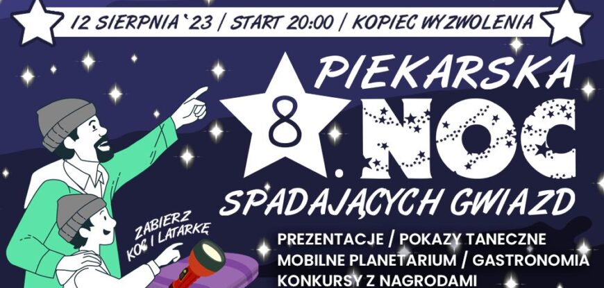 Widzimy się pod Kopcem Wyzwolenia podczas 8. Piekarskiej Nocy Spadających Gwiazd – nie możecie przegapić tego kosmicznego widowiska. Prosimy zabierzcie ze sobą latarki, koce i coś ciepłego do ubrania. W przypadku niekorzystnych warunków atmosferycznych możliwe jest odwołanie lub przeniesienie imprezy.