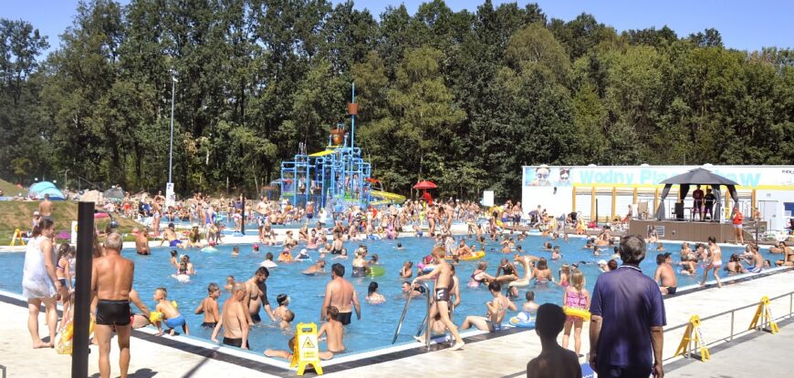 Basen piekarskiego MOSiR-u w upalne dni stanowi idealną propozycję dla rodzin z dziećmi. Uzupełnieniem oferty jest sąsiadujący park linowy i największy w mieście plac zabaw. Nic dziwnego, że chętnych do takiego wypoczynku nie brakuje. Końcówka lata jest upalna, mam nadzieję, że wkrótce będą dostępne wszystkie atrakcje.