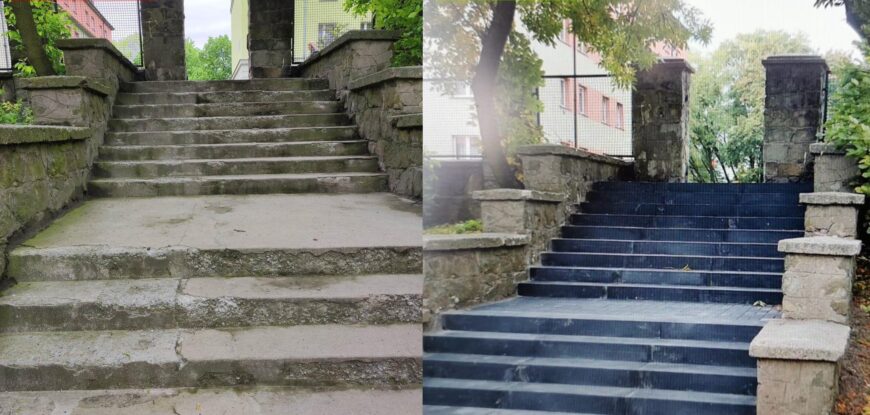 Schody, które prowadzą do przystanku autobusowego “Szarlej Poczta w nowej odsłonie. Od dłuższego czasu aż “prosiły się” o remont. W końcu temat zamknięty. A przed nami jeszcze dziesiątki podobnych, niewielkich, ale potrzebnych zadań inwestycyjno-remontowych.
