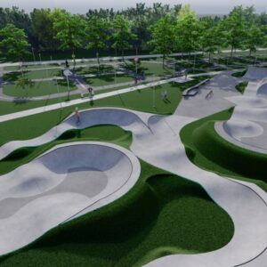 Rowerowy plac zabaw typu pumptrack będzie torem wykonanym w technologii lanego betonu, metodą torkretowania. Pumptrack składać się będzie z muld, zakrętów profilowanych oraz małych „hopek” ułożonych w takiej kolejności, aby umożliwić rozpędzenie i utrzymywanie prędkości bez pedałowania. Zarysy całości już widać. Przy zachowaniu maksymalnego poziomu bezpieczeństwa, obiekt pozwala na obycie z rowerem, rozwija koordynację ruchową oraz poprawia zmysł równowagi. Z pumptracku będą mogły korzystać osoby w różnym wieku oraz o różnym stopniu zaawansowania.