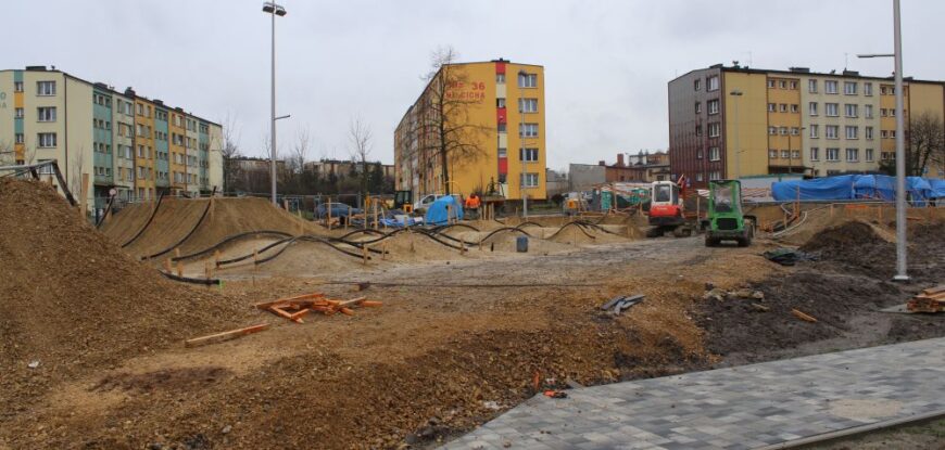 Pomysł, który pojawił się w projektach budżetu obywatelskiego, a który mogliśmy zrealizować dzięki dofinansowaniu ze środków rządowych w wysokości 4,5 mln – to realizowana dziś przebudowa Parku Międzyosiedlowego. Powstaje pumptrack i miasteczko rowerowe. Widać już efekty prac, które zakończą się przed wakacjami. Całość inwestycji to ponad 6 milionów złotych.