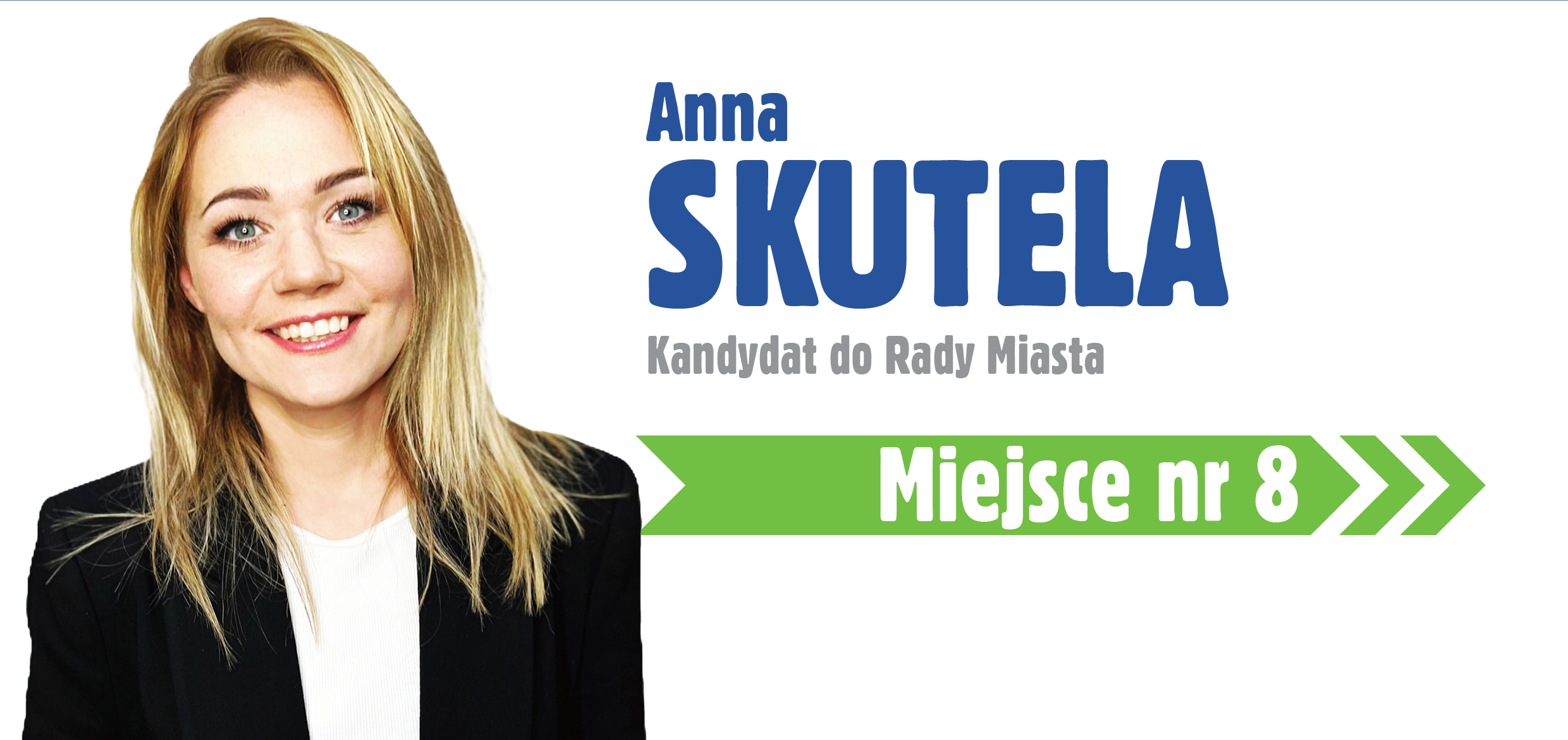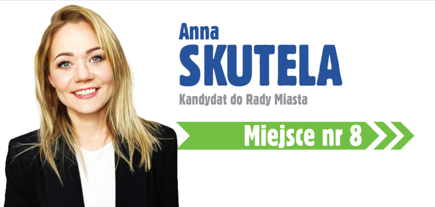 Przedstawiam Państwu Annę Skutelę – kandydatkę nr 8 Drużyny Sławy Umińskiej-Kajdan w okręgu 2 obejmującym Szarlej, Piekary Centrum, Osiedle na Lipce raz Osiedle Sowińskiego.