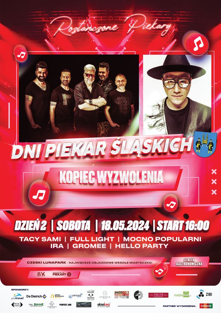 Weekend 17-19 maja w Piekarach Śląskich zapowiada się wyjątkowo rozrywkowo, pod Kopcem Wyzwolenia zagrają: Smolasty, Piersi, Ira, Gromee, Piękni i Młodzi oraz Daj to Głośniej, ale też wielu wielu innych wykonawców. Wszystko to za sprawa kolejnej edycji Dni Piekar Ślaskich. Do tego 20-lecie zespołu Full Light, ze specjalną niespodzianką – ja sam nie mogę się już doczekać. Będzie się działo – nie może Was zabraknąć!