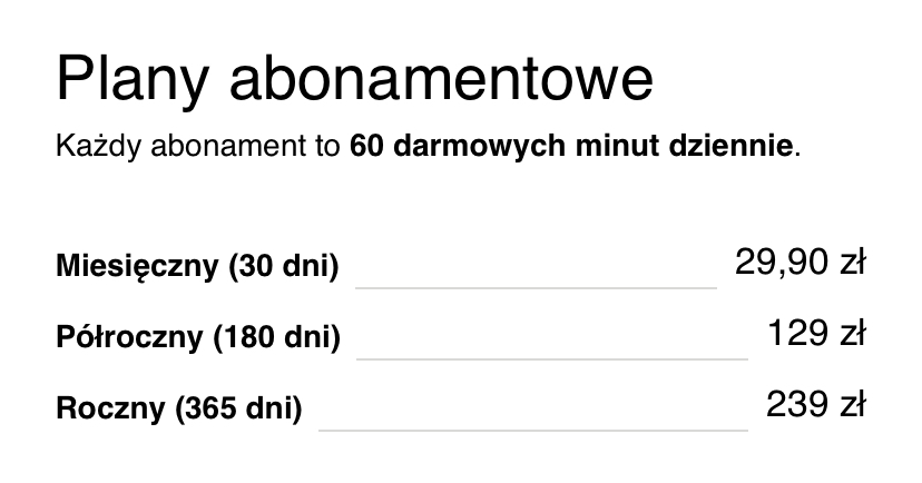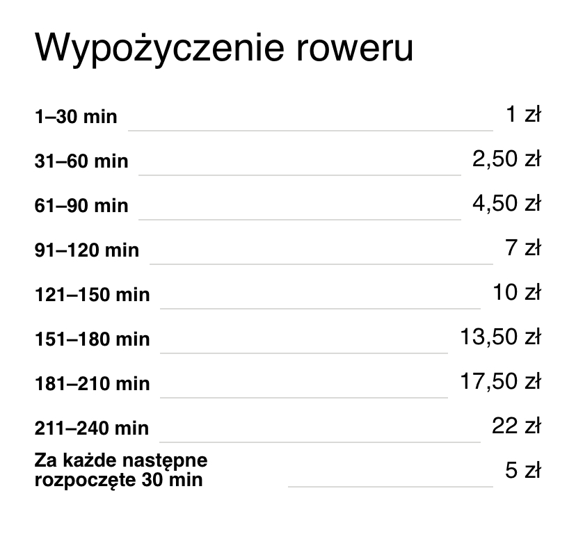 Ceny wypożyczenia roweru… BARDZO atrakcyjne. Mam nadzieję, że wymuszą obniżenie cen wypożyczania hulajnóg elektrycznych. Za 30 minut zapłacimy… ZŁOTÓWKĘ!