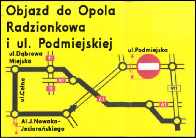 Z uwagi na wprowadzenie ruchu jednokierunkowego na ulicy Podmiejskiej, uniemożliwiając przejazd w kierunku Opola i Radzionkowa postanowiono poprowadzić objazd DW-911, przez węzeł “Piekary Śląskie” i autostradę A1, następnie przez węzeł “Bytom”, na ulicę Dąbrowa Miejska, Celną do Alei Jana Nowaka-Jeziorańskiego.