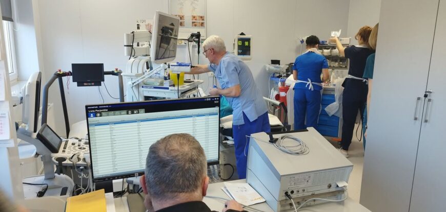 Oddział pulmonologii naszego szpitala odwiedził prof. dr hab. Artur Szlubowski – specjalista z 15-letnim doświadczeniem w pulmonologii interwencyjnej, kierownik Pracowni Endoskopowej w Krakowskim Szpitalu Specjalistycznym im. Jana Pawła II. Wspólnie z dr. Arkadiuszem Brodowskim i zespołem przeprowadzili serię zabiegów i konsultacji z wykorzystaniem kriobiopsji oraz EBUS z sondą radialną.