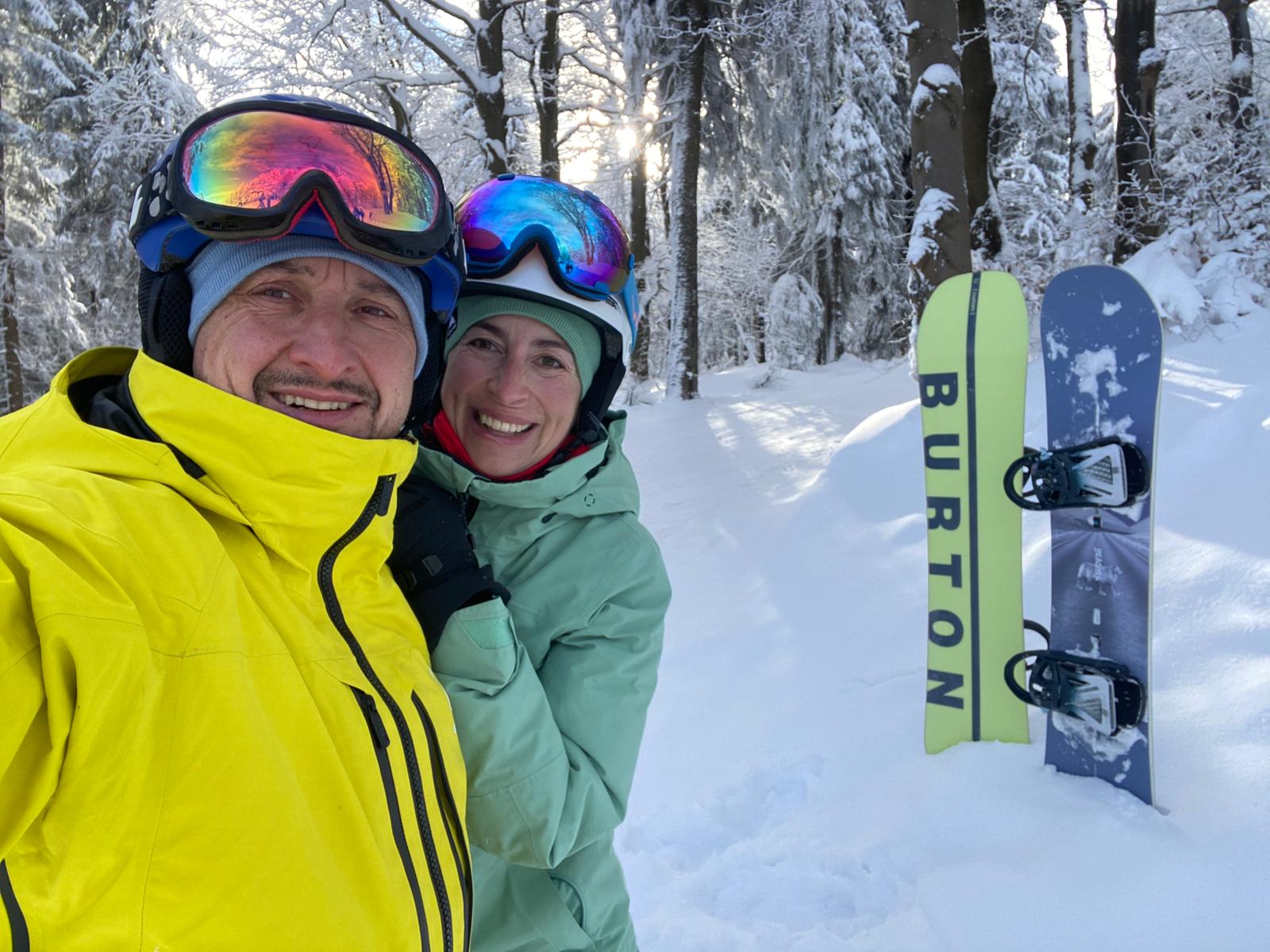 Marysia zrobiła duży krok do przodu na snowboardzie. Technicznie jest już naprawdę bardzo dobrze – potrzeba tylko więcej odwagi i pewności siebie. Wracamy oboje bardzo zadowoleni.