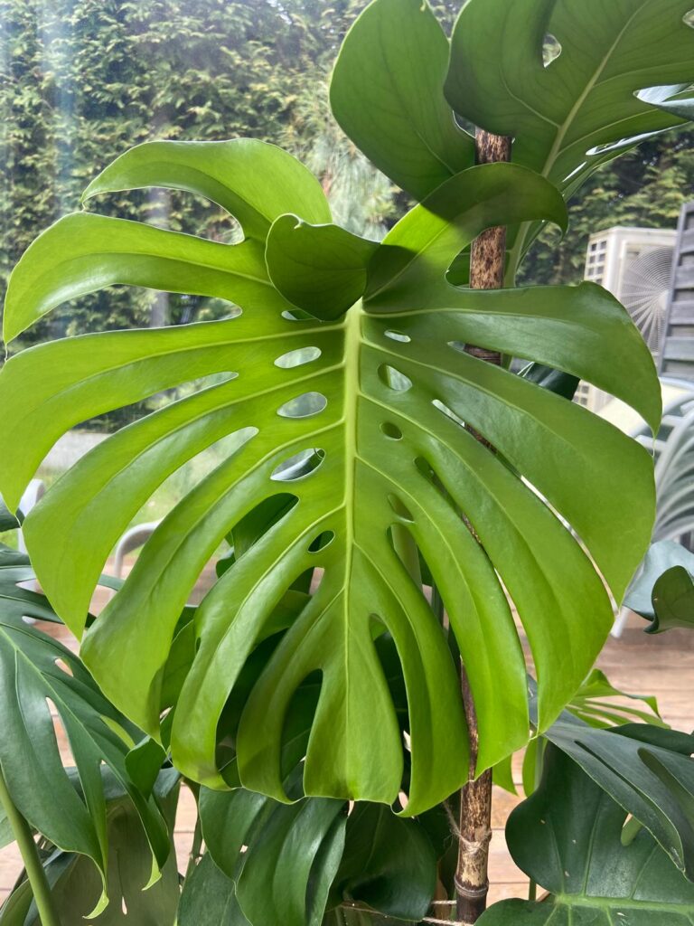 Swoją drogą Monstera świetnie się dostosowała. “Zauważyła”, że prowadzimy ją w górę – i kolejne liście już tak wyrastają, bez konieczności ich celowego podczepiania. Niesamowite.