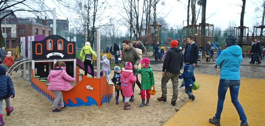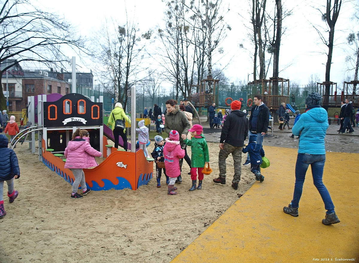 W wielkanocny sobotni poranek, dzieci spotkały się na terenie nowego placu zabaw MOSiR by poszukiwać czekoladowych jajek niespodzianek. Wszystko to w ramach akcji projektu UMWETU. Poszukiwania szły tak dobrze, że nawet część dzieci niestety nie miała już szans by wypełnić koszyczek słodkościami. Dla nich przygotowany był dodatkowy słodki poczęstunek. Część dzieci pozostała nawet dłużej aby skorzystać z nowych atrakcji placu zabaw.