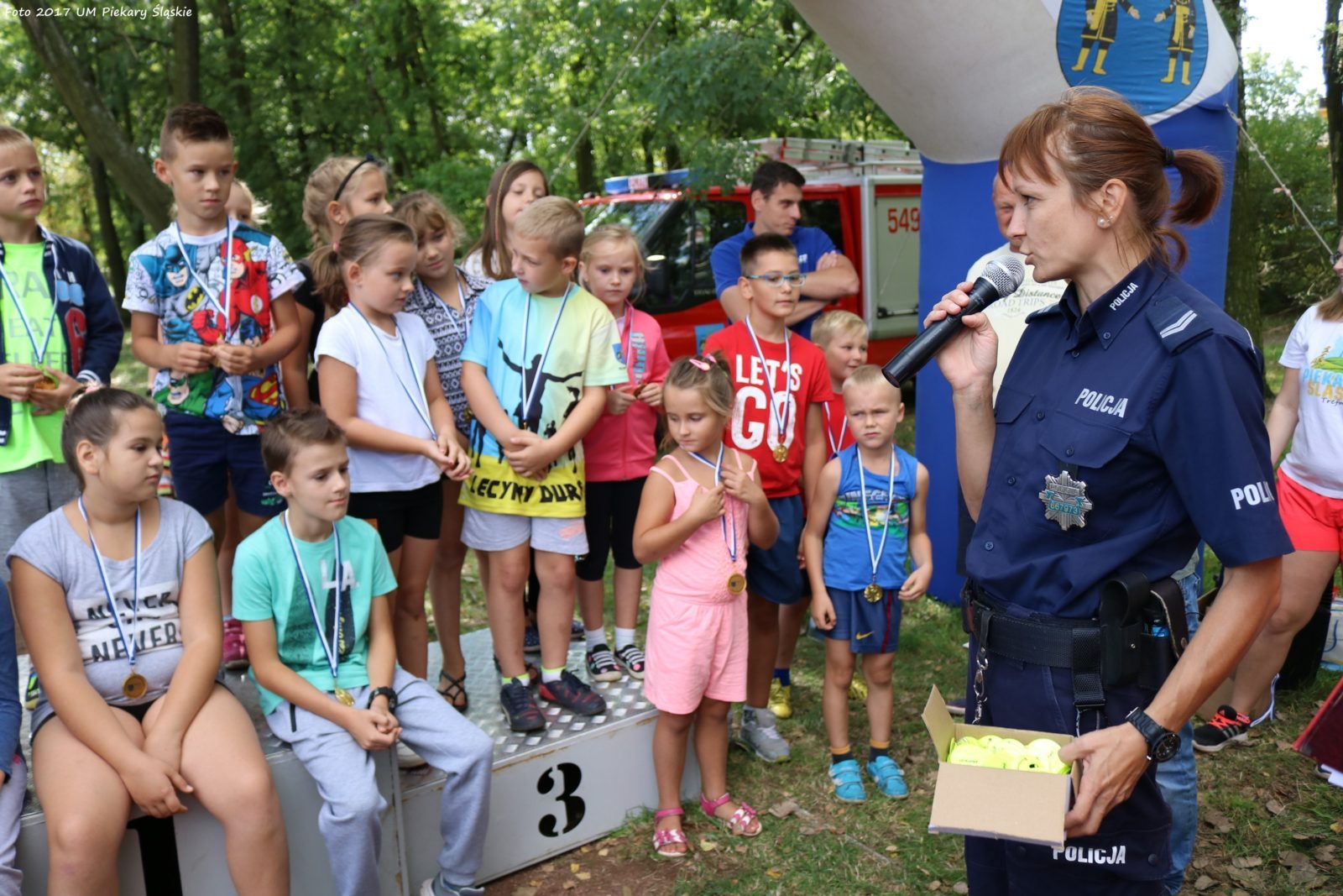 W Kamieniu niespodziewanie dodatkowo pojawiły się również przedstawicielki piekarskiej Komendy Policji by wręczyć wszystkim uczestnikom zawodów odblaski, które poprawią widoczność dzieci na drodze o czym warto pamiętać, zwłaszcza po rozpoczęciu roku szkolnego.