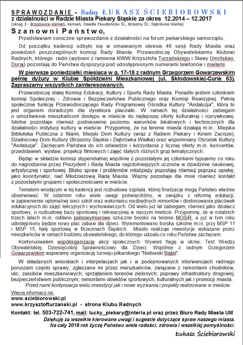 jak co roku przedstawiam sprawozdanie z działalności w Radzie Miasta i na forum piekarskiego samorządu.
