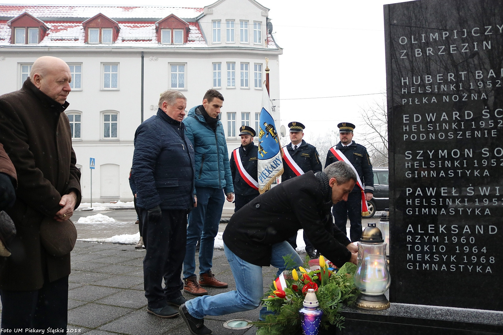 W czwartek, 8 lutego, w przededniu rozpoczęcia Zimowych Igrzysk Olimpijskich w Pjongczang w Korei Południowej, z inicjatywy radnego Łukasza Ściebiorowskiego (OKR), delegacje złożyły kwiaty i zapaliły znicze pod Pomnikiem Olimpijczyków z Brzezin Śląskich. Wśród zebranych nie zabrakło Prezydent Miasta Sławy Umińskiej-Duraj, radnych na czele z wiceprzewodniczącym Rady Miasta Grzegorzem Gowarzewskim (OKR), przedstawicieli stowarzyszeń sportowych, Miejskiego Ośrodka Sportu i Rekreacji, Miejskiego Przedsiębiorstwa Wodociągów i Kanalizacji, Dzielnicowego Domu Kultury, Domu Pomocy Społecznej, Miejskiej Szkoły Podstawowej nr 14, mieszkańców.