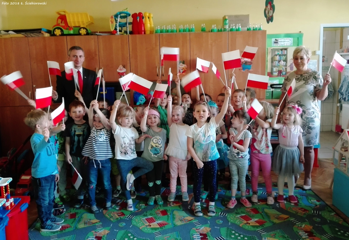 W trakcie wizyt w kilku piekarskich przedszkolach mogliśmy się po raz kolejny przekonać, że przedszkolaki świetnie znają symbole narodowe. Nie obce im są także słowa “Mazurka Dąbrowskiego”. Co roku odwiedzamy kolejne przedszkola w których przekazujemy biało-czerwone chorągiewki, które dzieci mogą zabrać do domu.