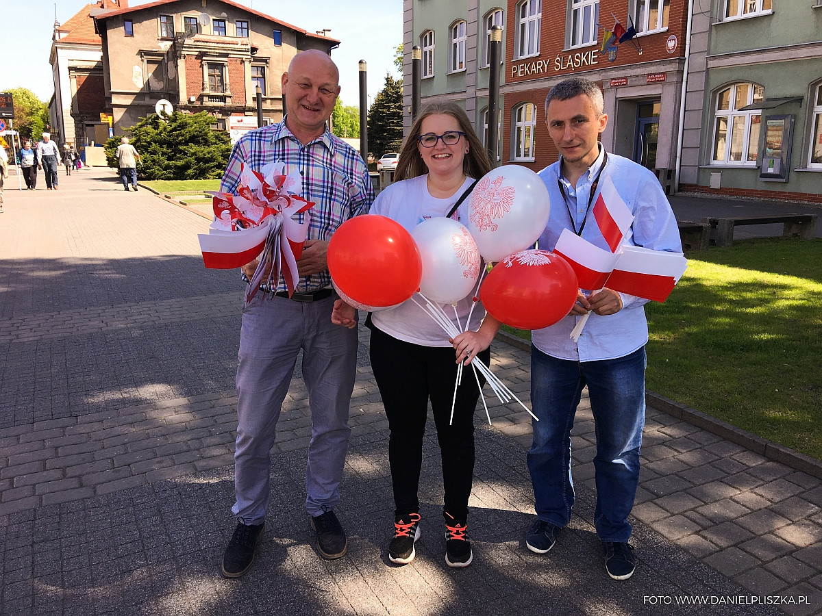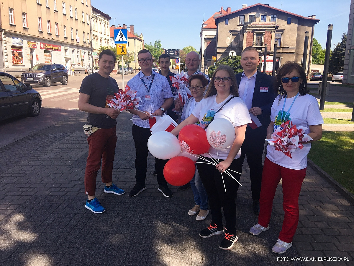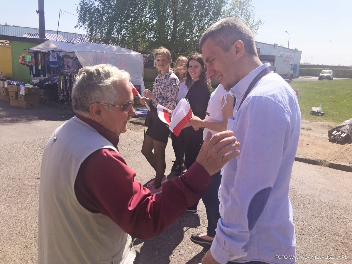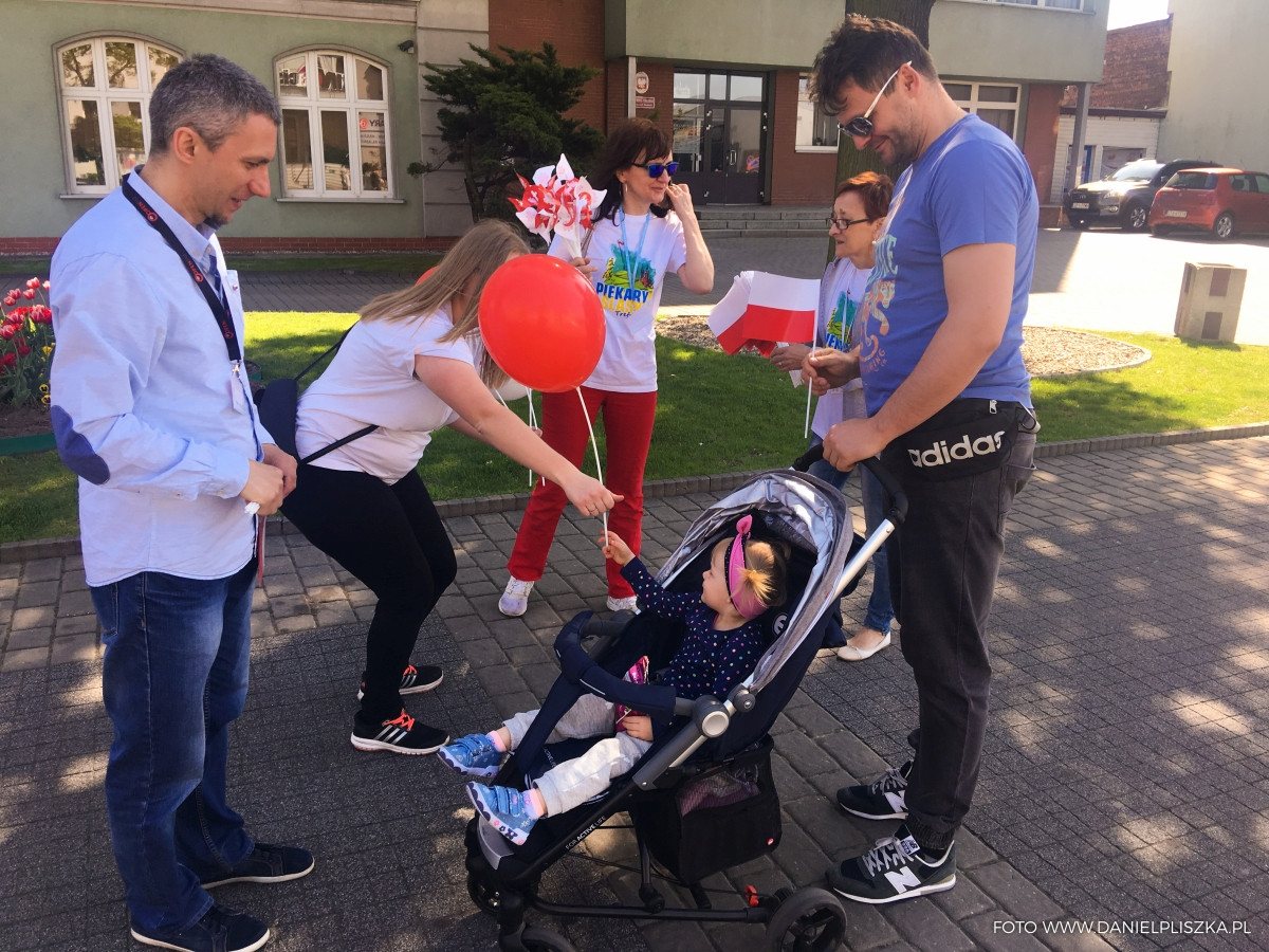 Po piątkowym układaniu “żywych flag” przyszedł czas już tradycyjnie na sobotnie spotkanie z mieszkańcami na mieście i przekazanie chorągiewek – flag Polski, biało-czerwonych wiatraczków i balonów.