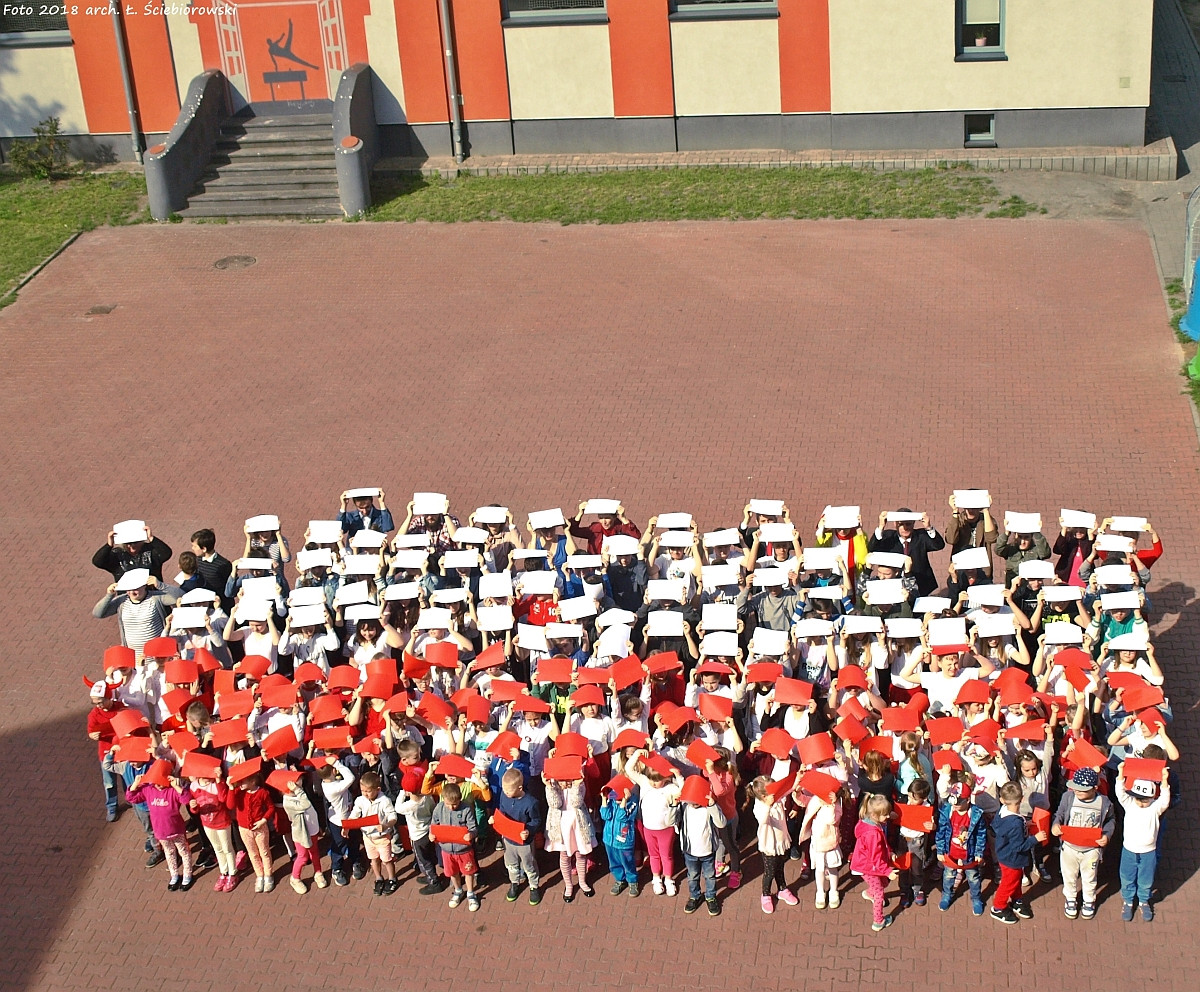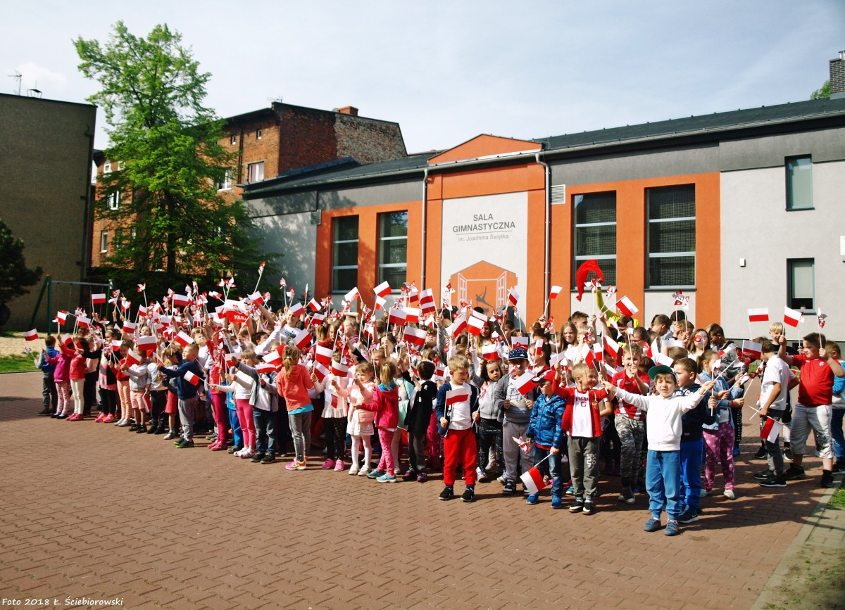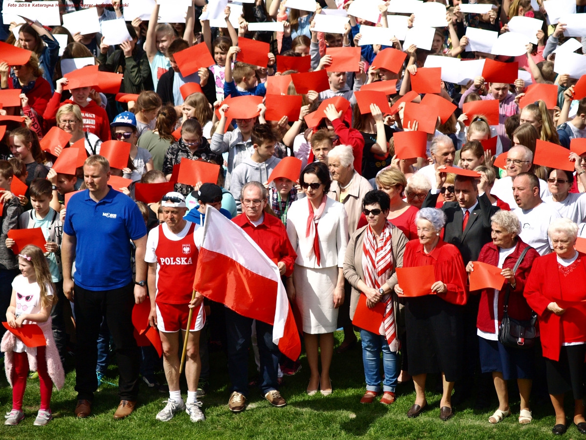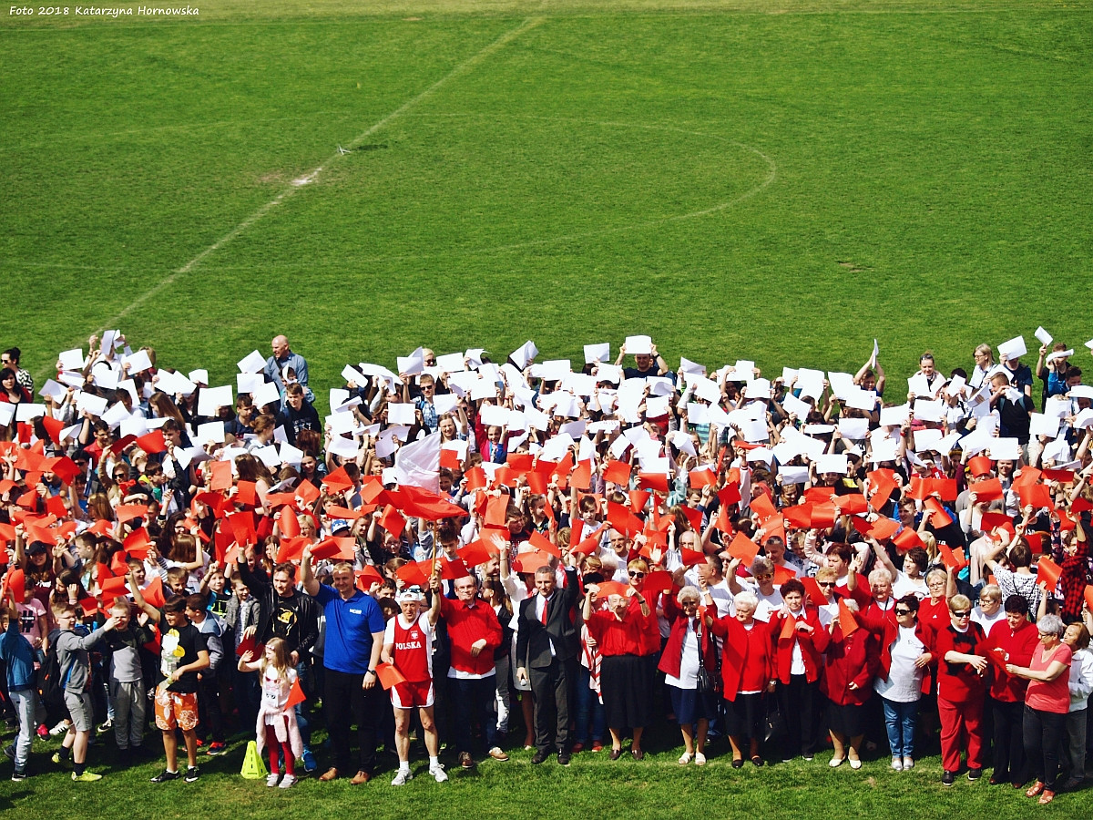 W piątek rano, 27 kwietnia z ułożeniem “żywej” flagi zmierzyli się uczniowie Miejskiej Szkoły Podstawowej nr 14 w Brzezinach Śląskich, wspierani przedszkolakami z Miejskiego Przedszkola nr 12, którzy odpowiedzieli na nasze zaproszenie do układania flagi. Dzieci i młodzież odśpiewała hymn, odbył się również uroczysty apel. Wspaniała lekcja patriotyzmu.