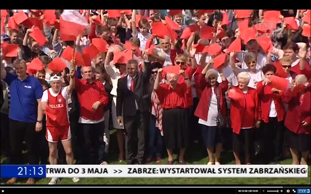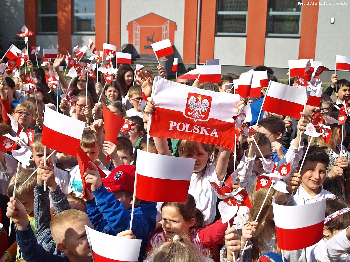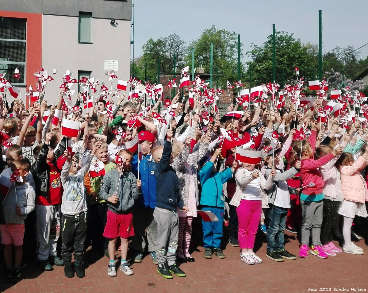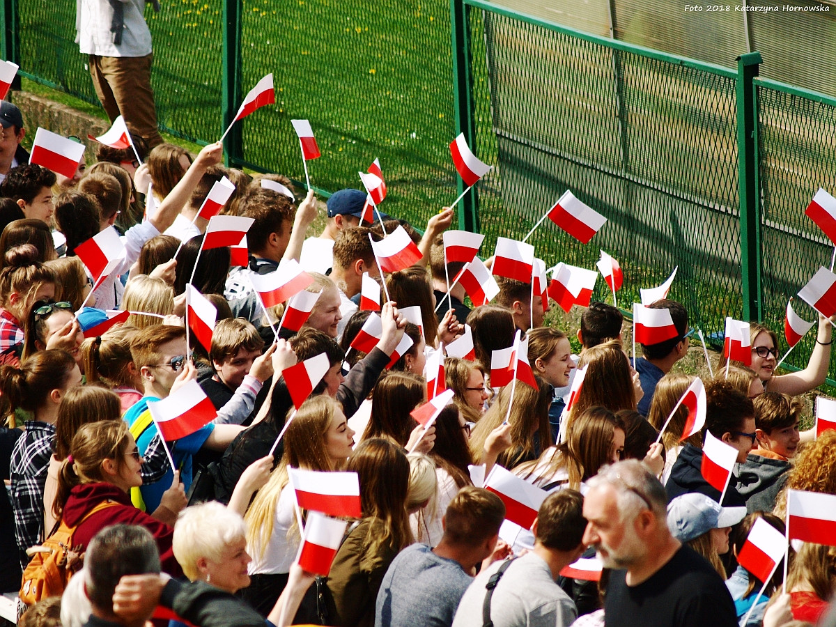 W piątek rano, 27 kwietnia z ułożeniem “żywej” flagi zmierzyli się uczniowie Miejskiej Szkoły Podstawowej nr 14 w Brzezinach Śląskich, wspierani przedszkolakami z Miejskiego Przedszkola nr 12, którzy odpowiedzieli na nasze zaproszenie do układania flagi. Dzieci i młodzież odśpiewała hymn, odbył się również uroczysty apel. Wspaniała lekcja patriotyzmu.