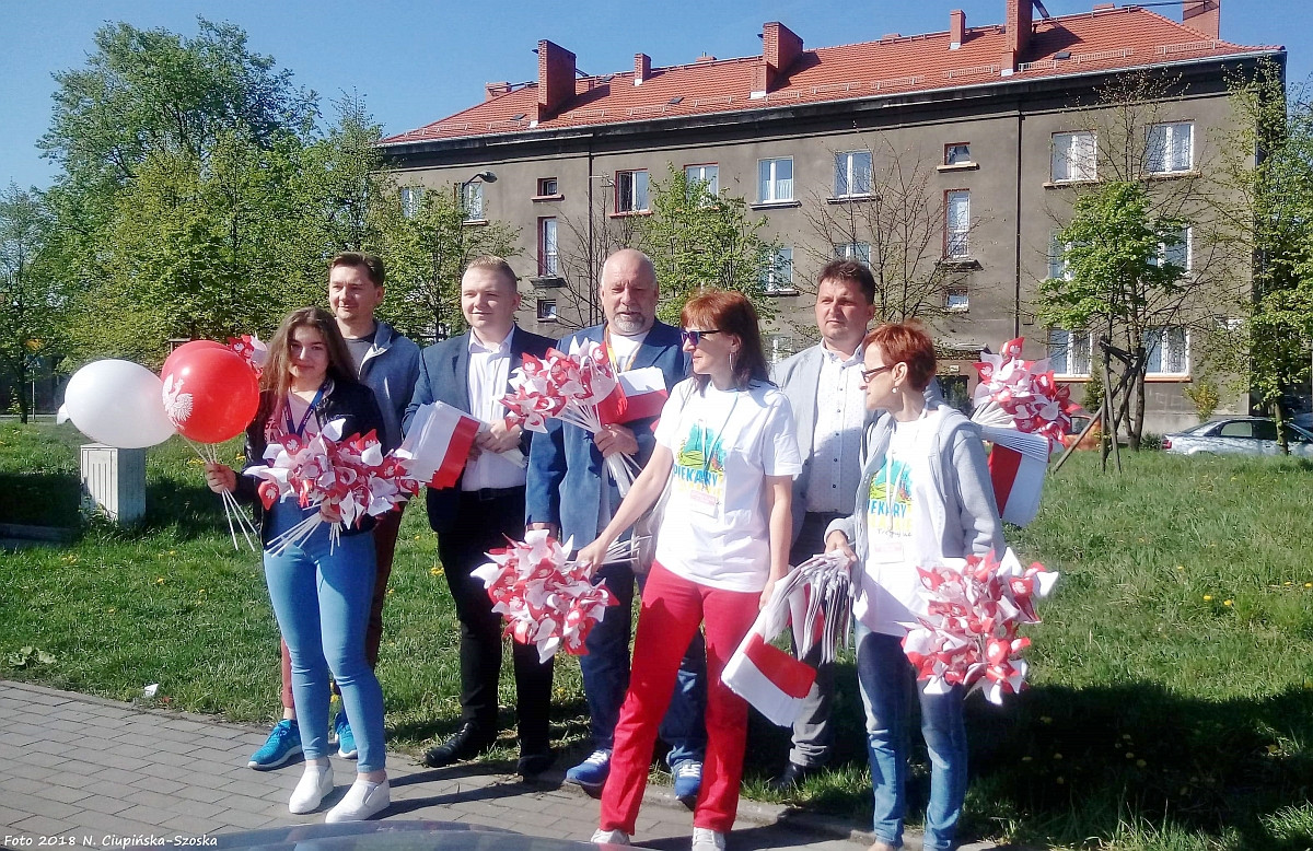 W tegorocznej akcji rozdawania flag organizowanej w ramach projektu UMWETU przez Obywatelski Klub Radnych, Stowarzyszenie Komitet Obywatelski i wsparciu partnerów akcji wzięli udział radni OKR: Natalia-Ciupińska-Szoska, Maciej Czempiel, Andrzej Wymysło, Stanisław Plajzner, społecznicy, m.in. Małgorzata Bednarek, Ewa Ściebiorowska, Marcin Felderhoff, Dariusz Pilarczyk oraz przedstawiciele Młodzieżowej Rady Miasta Sandra Celary, Wojtek Nadybał, Denis Dąbrowski, Wiktoria Rabsztyn, Amelia Mikołajczyk, Natalia Morawiec, Natalia Bomba, Aleksandra Żakowska i Daniel Pliszka.