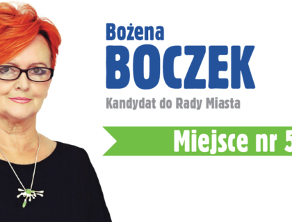 Przedstawiam Państwu radną Bożenę Boczek – kandydatkę nr 5 Drużyny Sławy Umińskiej-Kajdan, w okręgu nr 2 obejmującym Szar...