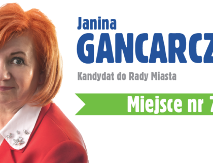 Przedstawiam Państwu Janinę Gancarczyk - kandydatkę nr 7 Drużyny Sławy Umińskiej-Kajdan, w okręgu nr 3 obejmującym Brzozow...