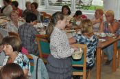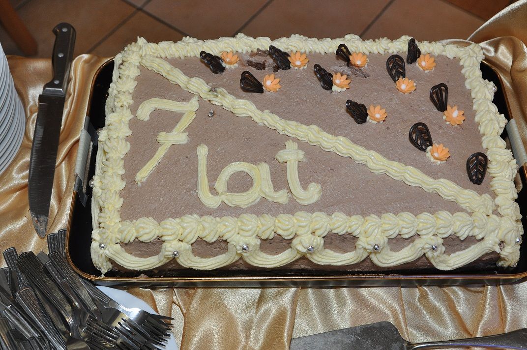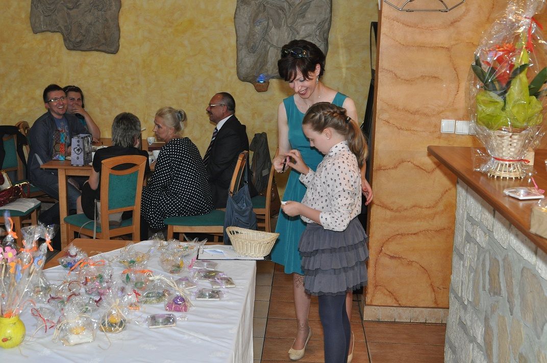 W gościnnej sali restauracji Victoria pojawili się oligofrenopedagodzy, Rada Rodziców placówki i uczestniczki comiesięcznych spotkań. Z rąk Dyrektora Krawczyka otrzymałam wspaniale oprawione gratulacje z okazji 7 urodzin-cudowną pamiątkę, która zawsze będzie mi przypominać tych wspaniałych ludzi. Nie była to jedyna niespodzianka-na scenę wjechał smakowity tort upieczony przez naszych gości. Dzieło sztuki cukierniczej nie tylko wyśmienicie smakowało ale także wspaniale się prezentowało. Wszystkie forumowiczki były zgodne, że smak tortu był niezrównany. Myliłby się jednak ten, kto sądziłby, że to wszystko. Na stołach panie z ZS rozłożyły piękne, ręcznie wykonane przez uczniów i nauczycieli szkoły ozdoby i upominki, które następnie zostały przeznaczone na tradycyjną loterię nagród.