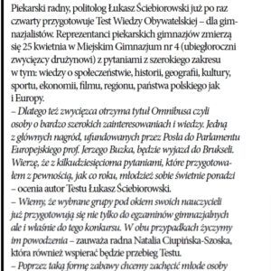 Informacje o kolejnej edycji Testu Wiedzy Obywatelskiej na łamach “Przeglądu Piekarskiego”