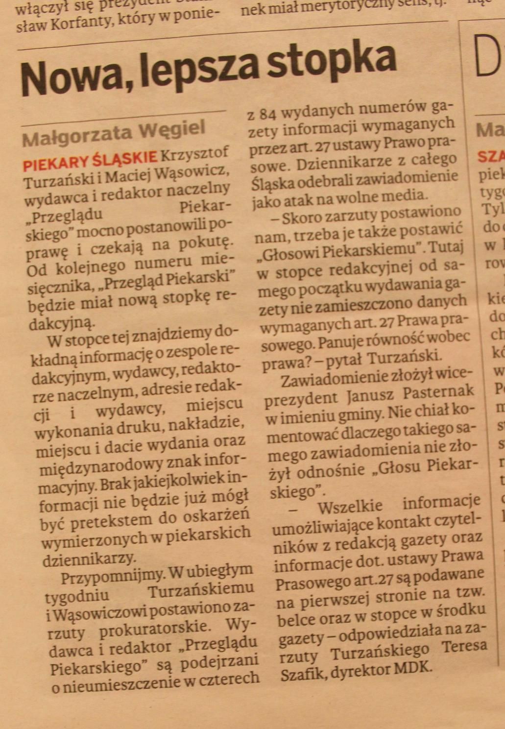 I tylko stopka miejskiej gazety ciągle w lesie.