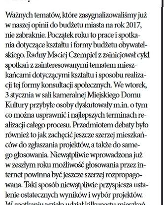 W artykule zamieszczonym w "Przeglądzie Piekarskim" Obywatelski Klub Radnych przybliża plany działalności na rok 2017