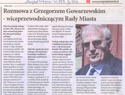 "Przegląd Piekarski" nr 132 z 02.2016 - wywiad z radnym Andrzelem Wymysło (Obywatelski Klub Radnych)