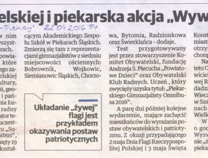 "Dziennik Zachodni - Piekary Śląskie" z 22 kwietnia 2016 przybliża na swoich łamach akcje społeczne współorganizowane pr...