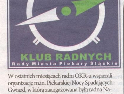 "Przegląd Piekarski" nr 127 z września 2015 przybliża funkcjonowanie Obywatelskiego Klubu Radnych w artykule "Nie tylko budżet"...