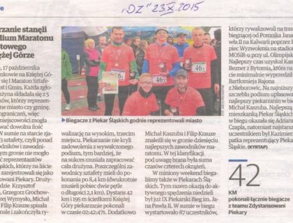 "Dziennik Zachodni" z 23.10.2015 informuje o sukcesie piekarskiej sztafety w składzie z radnym Andrzejem Wymysło (OKR).