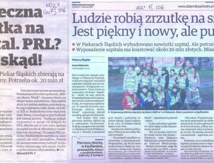 "Dziennik Zachodni" z 7.01.2016 przybliża w artykule "Społeczna zrzutka na szpital" akcję społeczną "Babcia, Mama, Wnuk", kt&oa...