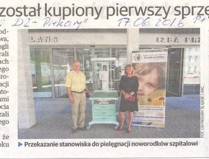 "Dziennik Zachodni" z 17 czerwca 2016 porawca w artykule do zbiórki w ramach akcji "Babcia, Mama, Wnuk", zaini...