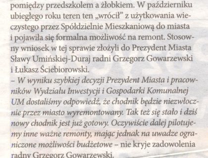 "Przegląd Piekarski" nr 144 z 05.2017 przybliża temat wykonanego remontu chodnika na Os. Powstańców Śl. o który wnioskowali radni ...