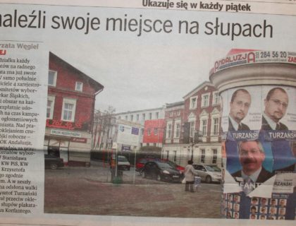 Plakat Krzysztofa Turzańskiego ktoś z rywali celowo umieścił na Kopcu Wyzwolenia żeby wywołać skandal.